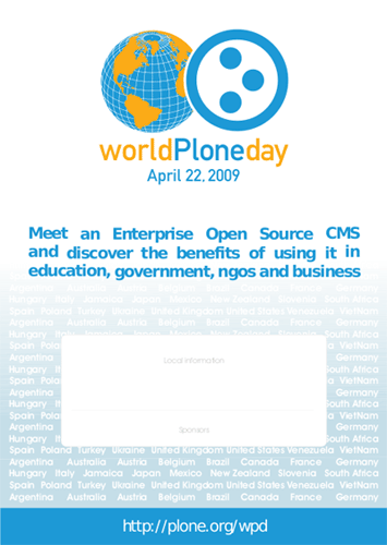 Enquanto isso, você pode visitar site do World Plone Day para conhecer mais sobre o evento, e se quiser organizar seu próprio evento, pode baixar os arquivos do Flier.